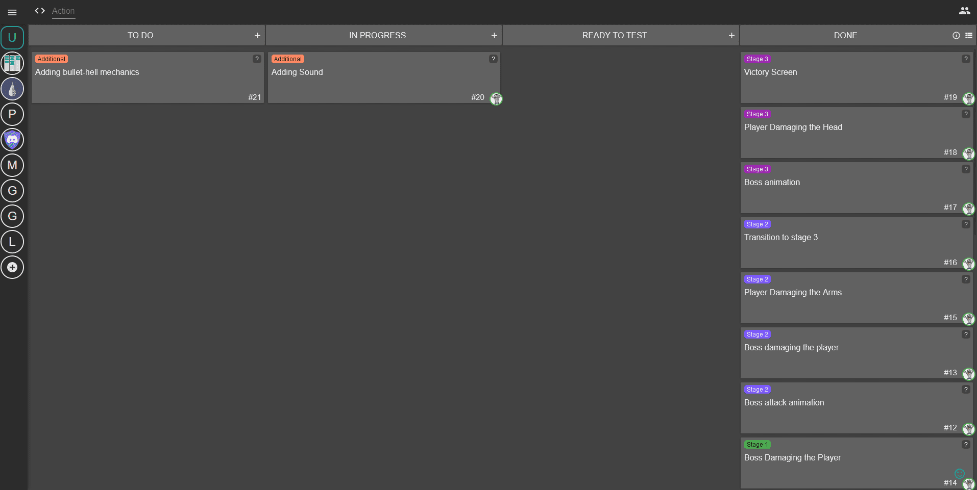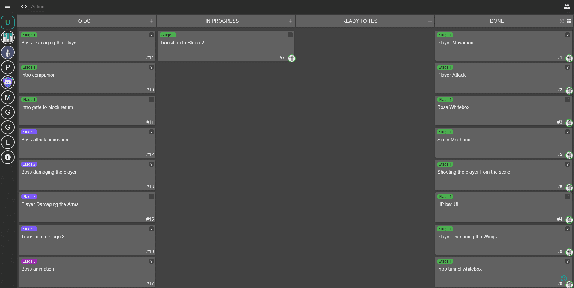 I followed my plan from the start and put the individual steps of the boss fight level I wanted to prototype into a Kanban board. I used my own website LetScrum for the job, as while it is a Scrum board, it can easily be used as a Kanban board as well.