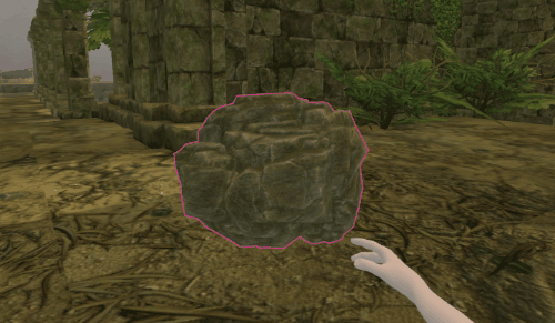In all of our levels so far we have used a simple box for the objects that the player can interact with. Similarly to the button, they didn't fit in the world. I've replaced them with a big rock from the asset pack to make them feel more natural.