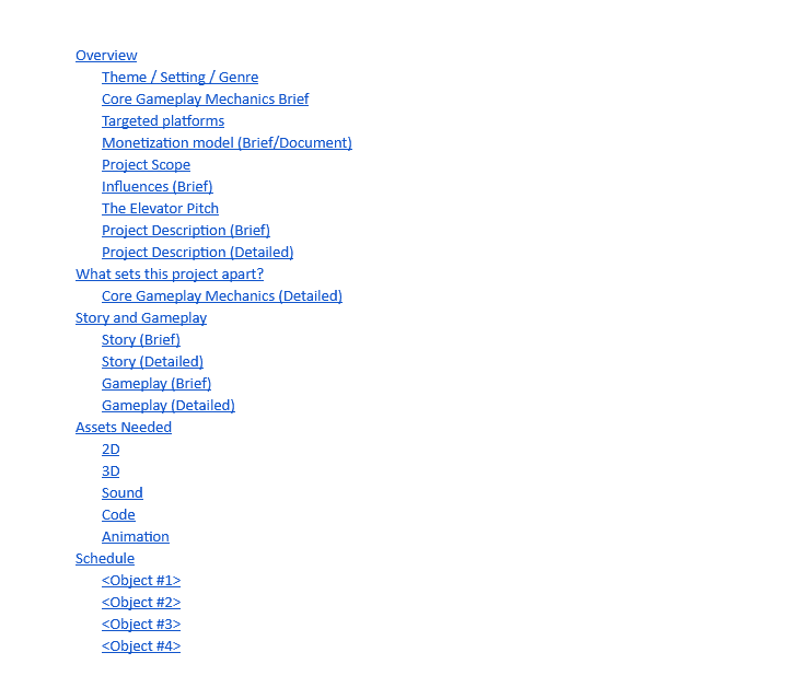 Stanley, B., 2015. Game Design Document Template. [online] Google Docs. Available at: https://docs.google.com/document/d/1axeeBWp683LPU8gCBQQqmquHMYHuG3uhNTN0LjSJBKk/edit#heading=h.9z2dsbsoc8hm [Accessed 13 June 2021].